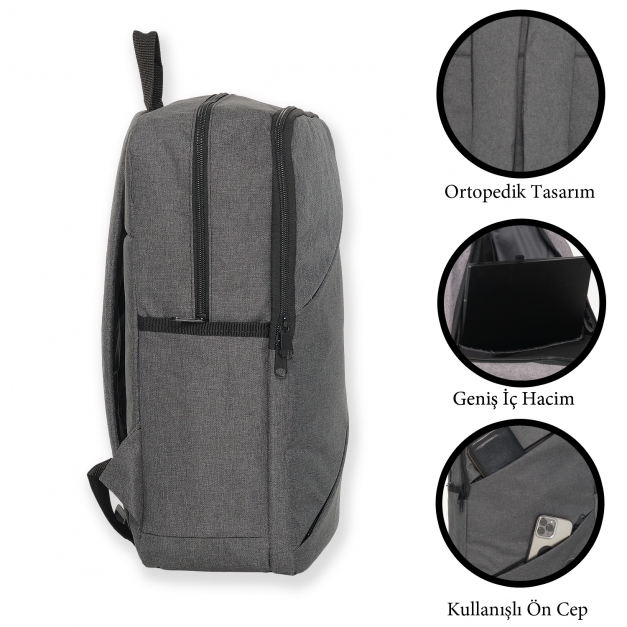 Gbag Çift Cepli Ortopedik Gri Laptop Sırt Çantası